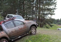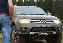 Грязь, болото и куча кровососущих насекомых всех размеров. Даже мощные внедорожники застревали на этой разбитой дороге. Что же говорить про наш кроссовер? Хоть как-то исправить положение нам помогли цепи, которые пришлось одеть на колеса автомобиля. Превосходная эластичность движка позволила нам идеально приспособиться к сцеплению и коробке, точно дозируя акселератор, сцепление и выбор передачи. В быстро меняющихся условиях дорожного покрытия можно смело "играть" выбором передачи - с 1 на 3 или даже 4, 4-2, 2-5. Такая эластичность японского двигателя позволяет сохранить левую ногу, которая работает со сцеплением, когда необходимо держаться в колонне и сохранить необходимый темп движения, при этом не "убивая" автомобиль. В итоге, мы все равно застряли. И нам на помощь поспешил истинный спасатель данной экспедиции – внедорожник Mitsubishi Pajero Sport. Эта невероятная машина была оснащена интегрированной лебедкой на 4,5 тонны, которая с легкостью вытягивала каждый второй внедорожник нашей экспедиции. А так же за счет внедорожных шин МТ, Pajero Sport просто врезался в землю, что не позволяло застрявшим автомобилям утащить его за собой в эту трясину.